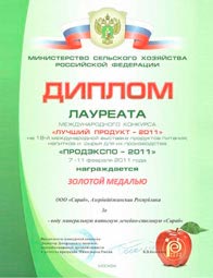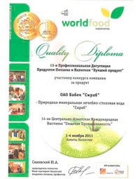 Belə ki, 2009-cu ildə Ukraynanın Kiyev şəhərində keçirilən "Qida məhsulları və içkilərin XII forumu"nda Qızıl medal, 2010-cu ildə Moskva şəhərində keçirilən XVII Beynəlxalq "PRODEKSPO 2010" sərgisində Gümüş medal, 2011-ci ildə Moskva şəhərində keçirilən XVIII Beynəlxalq "PRODEKSPO-2011"sərgisində Qızıl medal və 2011-ci ilin 1-4 noyabr tarixində Qazaxıstanın Alma-Ata şəhərində keçirilən XIV Beynəlxalq Mərkəzi Asiya "Yeyinti sənayesi" sərgisində "Sirab"mineral suyu Qızıl medala layiq görülmüşdür.Bu da bizim gələcək uğurlarımızın təməlidir.
